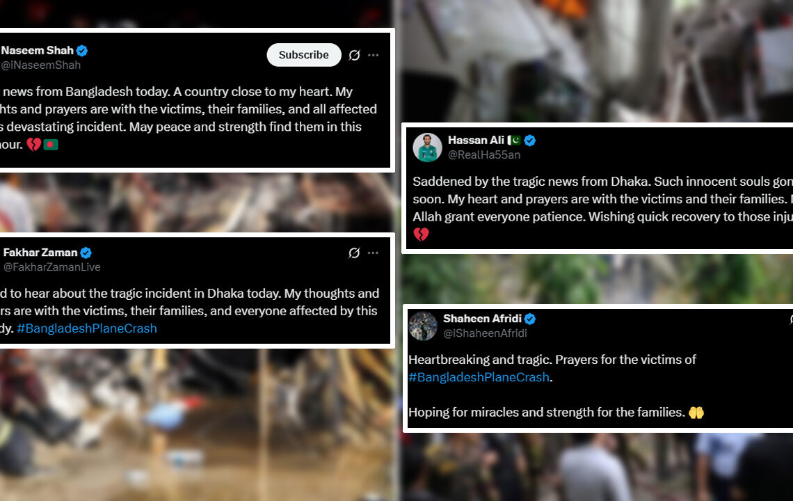 বাংলাদেশ সফরে না থাকা পেসার শাহিন আফ্রিদি লিখেছেন, “হৃদয়বিদারক একটি ঘটনা। বাংলাদেশে বিমান দুর্ঘটনায় যারা ক্ষতিগ্রস্ত হয়েছেন, তাদের জন্য প্রার্থনা করছি। অলৌকিক কিছু হোক, পরিবারগুলো শক্তি পাক।”