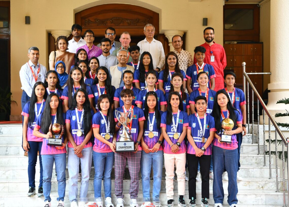এসময় নারী ফুটবলাররা তাদের স্বপ্ন এবং তাদের দৈনন্দিন সংগ্রামের কথা প্রধান উপদেষ্টাকে জানান।